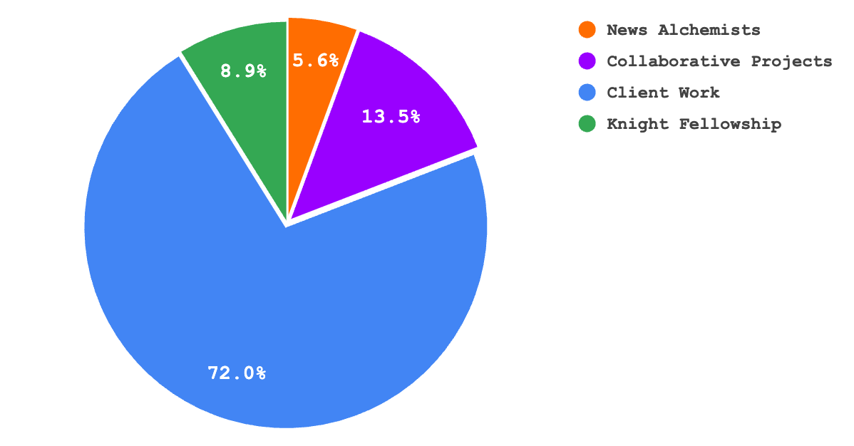 And lastly, the revenue stream that was the smallest but also the one that show the most promise: the 5.6% that resulted from my work on News Alchemists (newsletter sponsorships, donations, and speaking engagements). This intrigues me for two reasons: