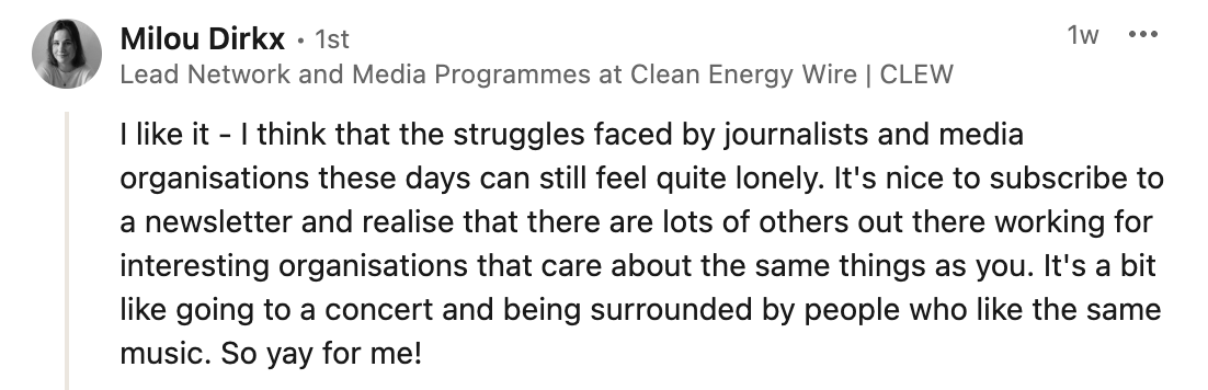 And a first welcome to new subscribers from Latinoamรฉrica21, The European Correspondent, Rappler, The Kyiv Independent, Security Unwired, the European Parliament, Pรกgina Internacional, Automattic, Control Data Training, City University of London, the Lenfest Institute, and all of you brave souls working independently.