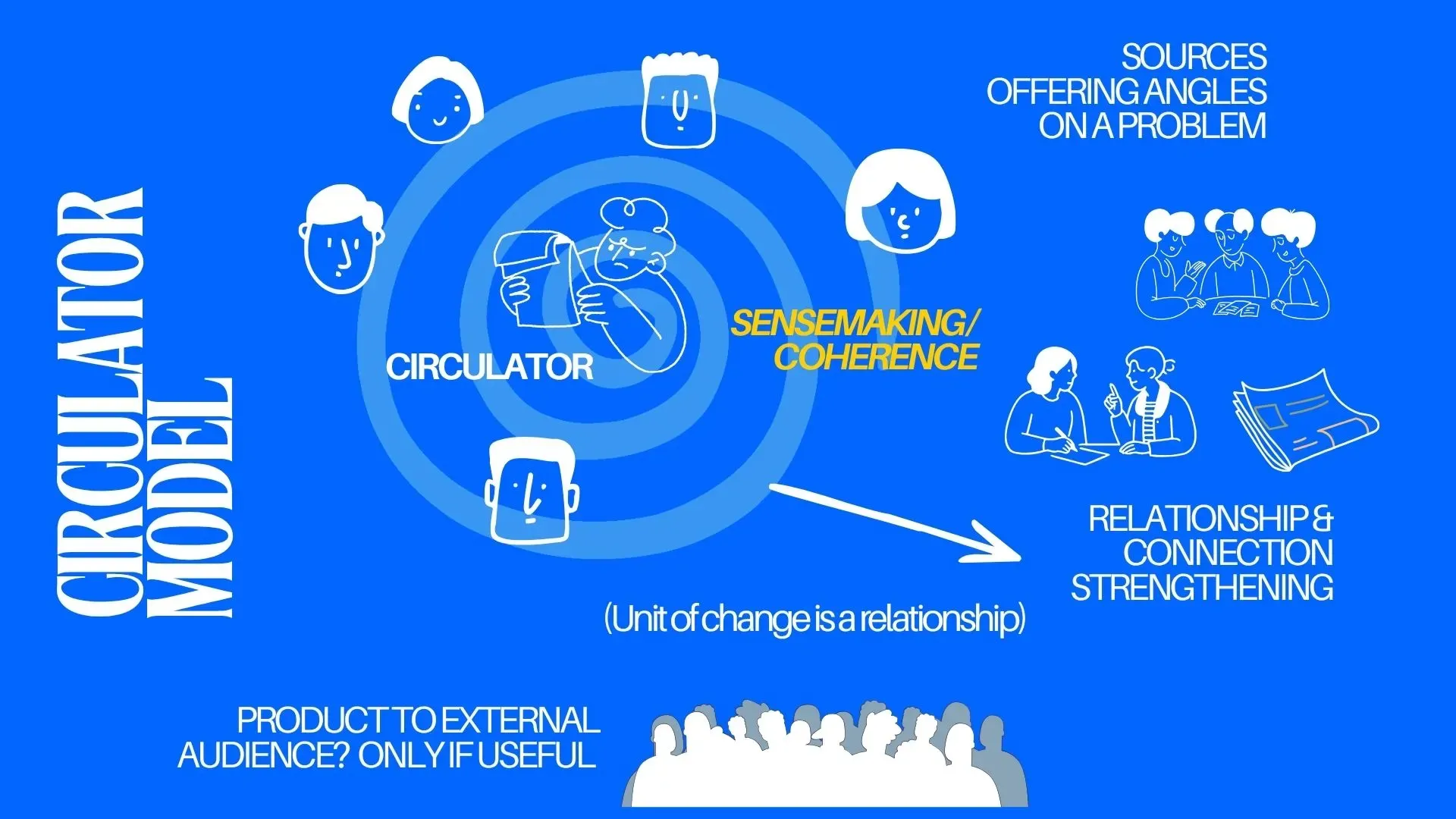 A journalist or a newsroom acting as a circulator "doesn't just broadcast information outward to a disorganized audience; they ensure knowledge moves through the system to the people who can actually do something with it."